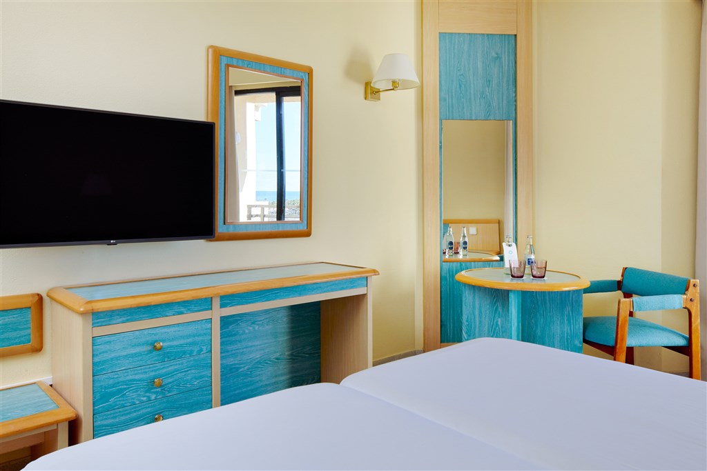 Dvoulůžkový pokojJednoduše, ale účelně zařízený pokoj má telefon, televizi se satelitními programy, možnost Wi-Fi připojení k internetu, trezor (k pronájmu), klimatizaci, ledničku, koupelnu s WC a vysoušečem vlasů, balkon. Některé pokoje mají kuchyňský kout. Dle dostupnosti hotel nabízí po příjezdu možnost pokoje s výhledem na moře (za poplatek na recepci hotelu).