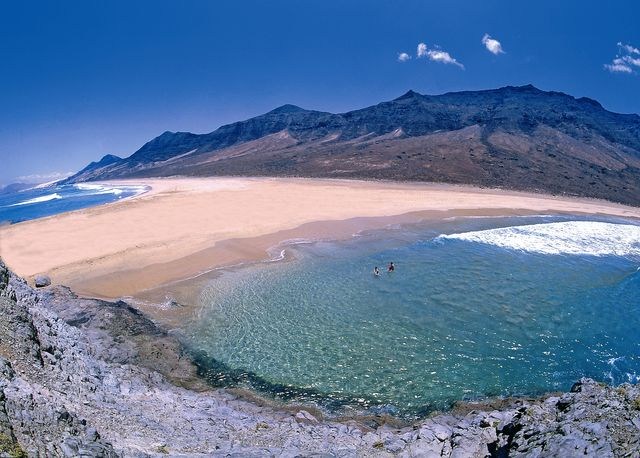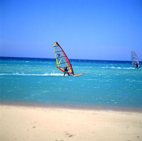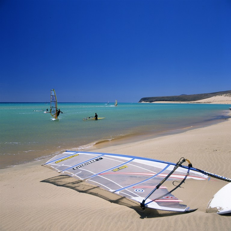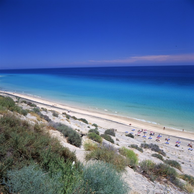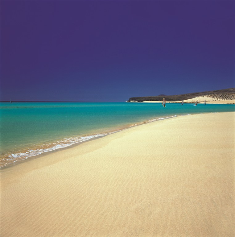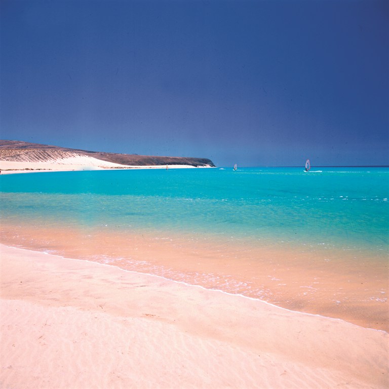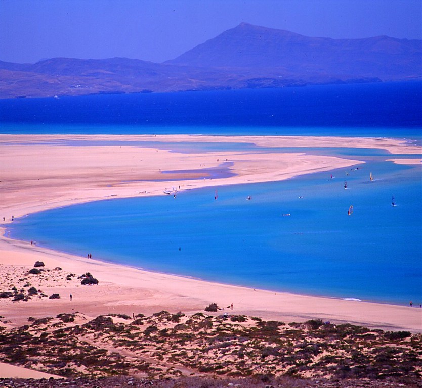 Playa de Sotavento (11 000 m dlouhá, světlý písek),
